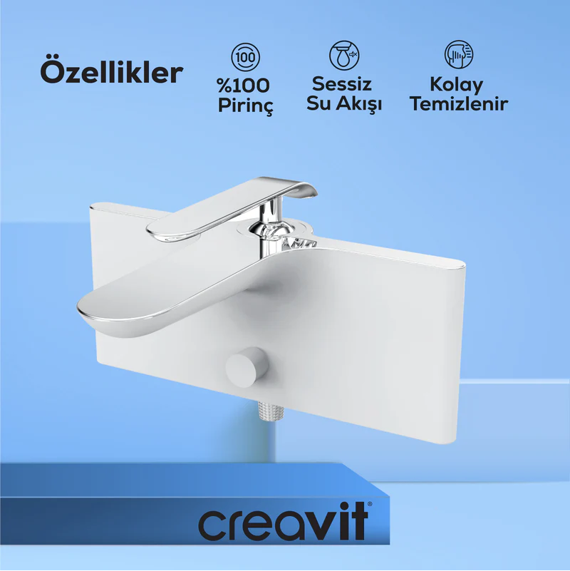 Kolay Temizlenebilir Yüzey: Leke tutmayan armatür yüzeyi ile banyonuzda hijyen standartlarınızı zahmetsizce koruyabilirsiniz. Dayanıklılık ve Kalite: Creavit armatürleri, gövdeleri tamamen pirinç malzemeden oluştuğu için suyun doğallığını, kokusunu ve rengini bozmaz.