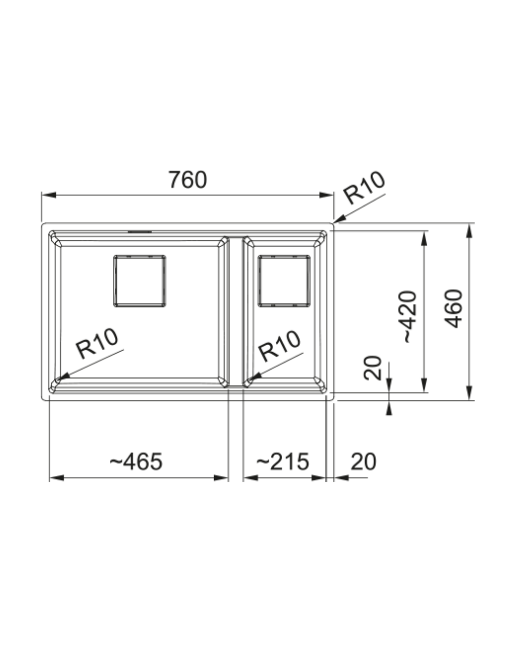 • Hazne derinliği 200 mm